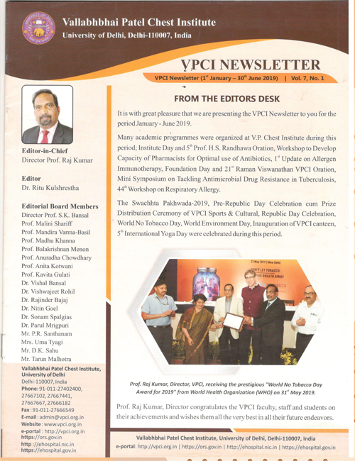 The Vallabhbhai Patel Chest Institute (VPCI) is a unique postgraduate medical institution devoted to research, teaching and patient care in the field of chest diseases. It is a University of Delhi maintained institution and is funded entirely by the Ministry of Health and Family Welfare, Government of India. The Institute is ideally located in the heart of the main campus of the University of Delhi, providing the requisite academic environment. &n